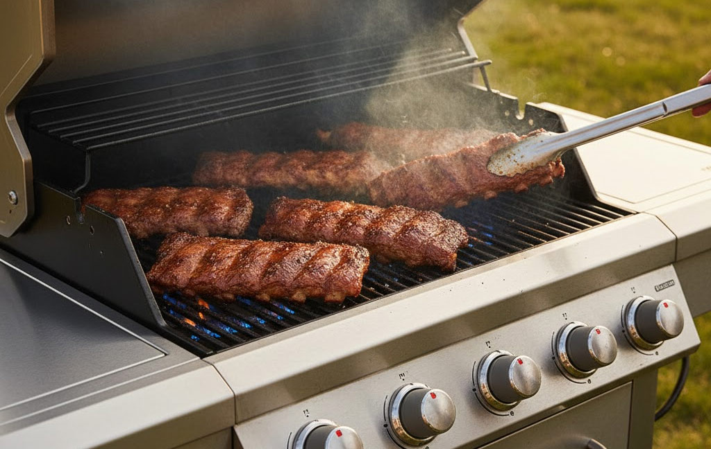 • Set up Grill: Prepare your grill for indirect heat, aiming to maintain a consistent temperature of **225°F (107°C)**. Add a drip pan under where the ribs will sit. Add pre-soaked wood chips or chunks for smoke.